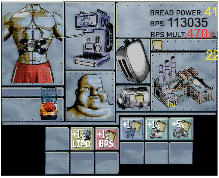 The art is pretty great! It took me a second to understand the gameplay but it was weirdly addicting clicking the buttons and leveling up the multipliers. great job overall!